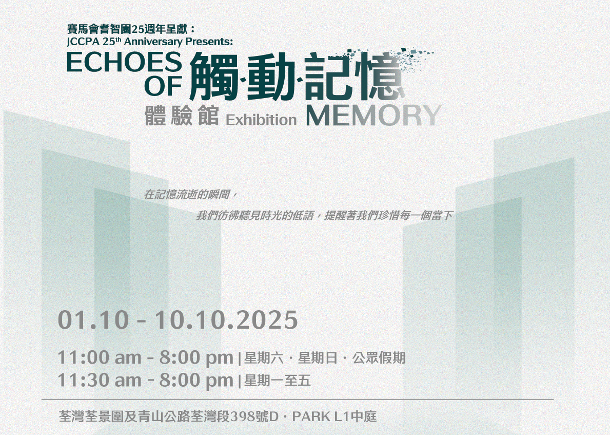 | 01/10/2025 | 賽馬會耆智園25周年呈獻:觸・動・記憶體驗館 | 詳情及報名表格 |